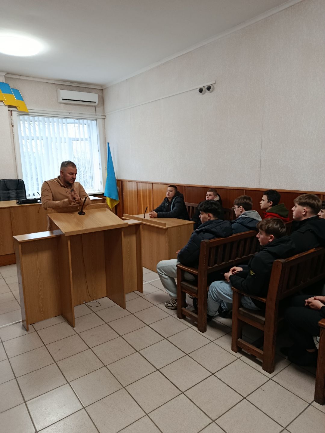 З учнями поспілкувався суддя-спікер Глибоцького районного суду Чернівецької області Григорчак Юрій Петрович, який розповів юним відвідувачам про особливості роботи суду, види судових справ, що підсудні суду та особливості їхнього розгляду, а також запропонував присутнім учням відвідати судове засідання з розгляду цивільної справи за його головуванням, на що вони з радістю погодились.
